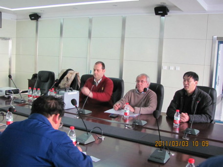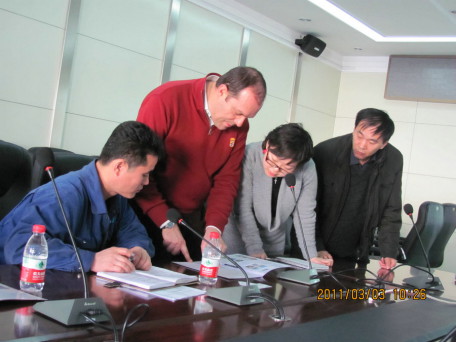 2011年俄方技術(shù)總監(jiān)來(lái)我公司針對(duì)電廠大型機(jī)組安裝超聲波除水垢機(jī)器,親臨現(xiàn)場(chǎng)制定安裝方案。